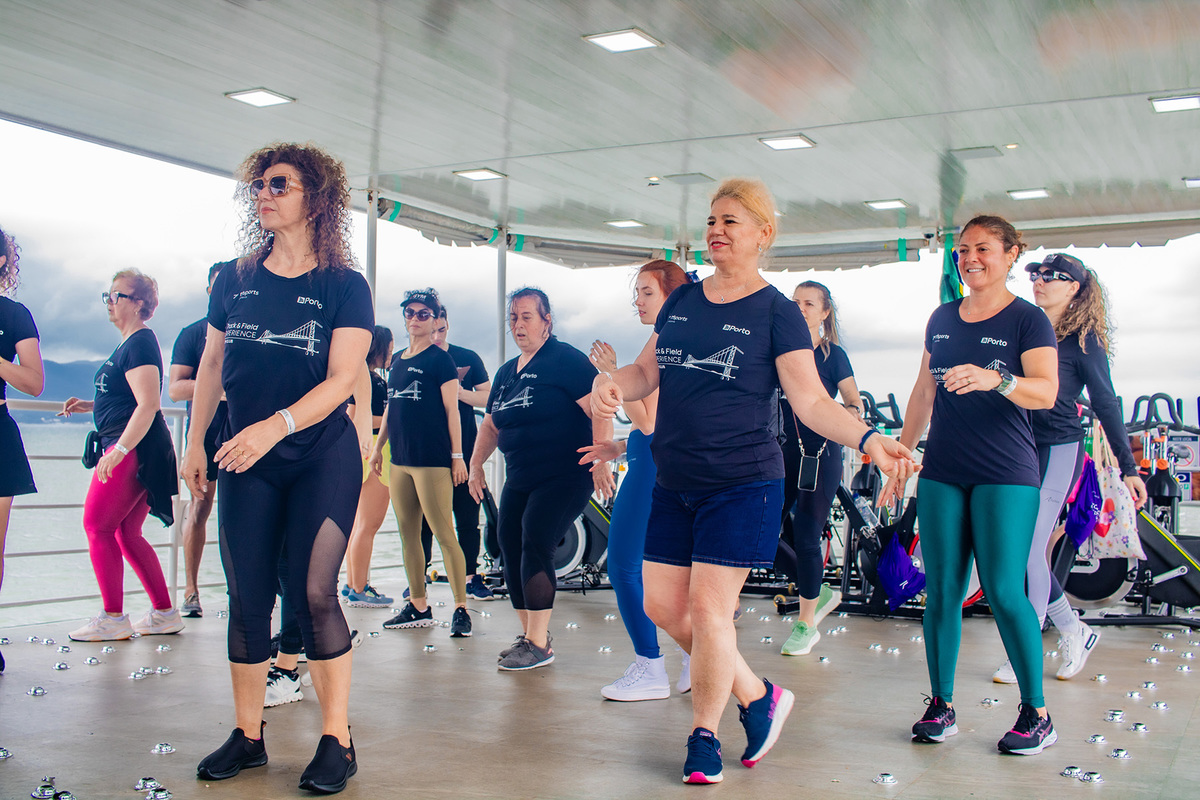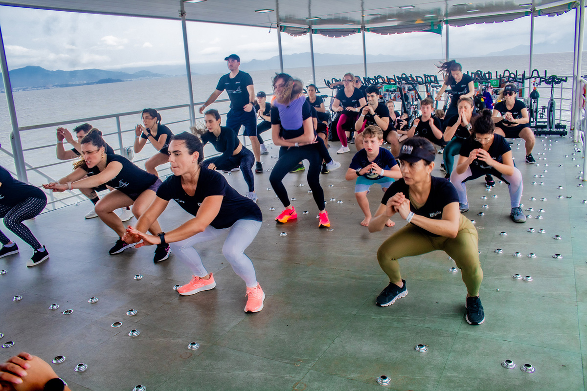 Evento inovador em Floripa, realizado pela Gym Club e a Track and field, foi realizado atividades como aulas de dança e bike em alto mar, passando por diferentes pontos da ilha.